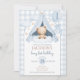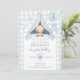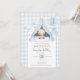 Convite Blue Gingham Teddy Bear Balloon Boy 1st Birthday