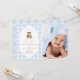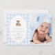 Convite Blue Gingham Teddy Bear Beary First Birthday Photo