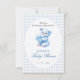 Convite Blue Gingham Teddy Bear Neutral Baby Shower
