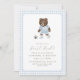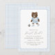 Convite Blue Gingham Teddy Bear Soccer First Kick