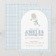 Convite Blue Gingham Tennis 9th Birthday Party for Girls