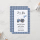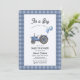 Convite Blue Gingham Tractor Balloon Baby Shower