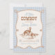 Saddle up for a sweet celebration! This gingham cowboy baby shower invite features western flair with a charming twist—easy to edit, download, and print or share digitally.
