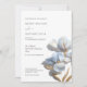 This elegant artistic wedding invitation features AI created white 3 dimensional blue and rose gold flowers.