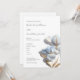 This elegant artistic minimalist wedding invitation features contemporary white 3 dimensional blue and gold flowers.