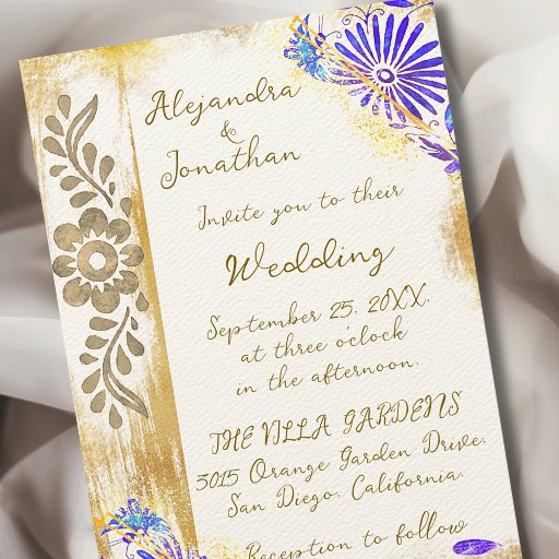 Convite Blue & Gold Mexican Otomi Baroque Elegant Wedding
