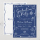 Be proud, rejoice and showcase this milestone of your favorite grad! Send out this quirky, whimsical, simple, modern, personalized invitation for an event to remember. Fun, white handwritten script typography and hand drawn graduation icon sketch doodles overlay a navy blue background. On the back, their name and a hand drawn cap and diploma in navy blue overlay white. Personalize the custom text with your grad’s name, school, class year and party info on the front. Matching save the dates, thank you cards, banners, welcome signs, posters and other graduation goodies are also available in this trendy and whimsical collection. Guaranteed to add stylish fun to their special occasion!