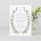 This elegant wedding invitation features a custom monogram crest with a border of beautiful watercolor blue-and-white hydrangea blooms and sage greenery, creating a soft and inviting look. The timeless artwork offers a romantic, polished look ideal for formal or coastal weddings. Add custom text to create a stunning floral wedding invitation that your guests will love.