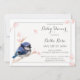 O convite do chá de fraldas apresenta o jay azul do bebê tocando em um galho. Clique em personalizar para alterar o estilo, o tamanho ou a cor da fonte.