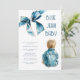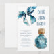 Set the scene for a joyful celebration with these blue jean baby themed baby shower invitations. Featuring an adorable denim bow, and a baby wearing a denim jacket, and a modern invitation template, they're perfect for honoring the parents to be.