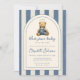 This cute baby shower invitation, featuring a teddy bear wearing blue jean dungarees, can be personalized with all your special baby shower details and registry QR code on the reverse. Designed by Thisisnotme©