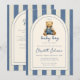 This cute boy baby shower invitation, featuring a teddy bear wearing blue jean dungarees, can be personalized with all your special baby shower details and registry QR code on the reverse. Designed by Thisisnotme©