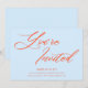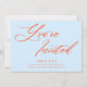 This birthday party invitation features "You're Invited" in a big, sweeping orange script across a soft sky blue background, with the party details in small bold text below. It's a fun, confident look that feels fresh and celebratory. There's room for the guest of honor's name, age, date, location, and RSVP info. It's shown here as a 21st birthday invite but works just as well for any age — or honestly any celebration where you want the invitation to feel a little special.