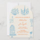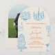 Convite Blue Orange Hand Drawn Whimsical Arched Wedding