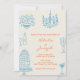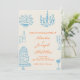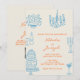 Convite Blue Orange Hand Drawn Whimsical QR Code Wedding