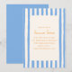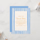 This summer party invitation features a hand-painted blue and cream stripe border with all the party details centered on a cream background in warm yellow type. Breezy, colorful, and very summer — works for a backyard soiree, garden party, or any warm-weather celebration.
