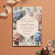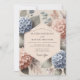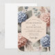 A romantic, soft composition featuring clusters of blue and peach hydrangeas. Delicate foliage in muted greens and taupes creates a tranquil, botanical atmosphere. This design evokes a vintage, dreamy mood perfect for an elegant gathering.