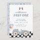 Convite Blue Race Car Fast One First Birthday Invite