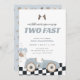 Convite Blue Race Car Two Fast Second Birthday Invite