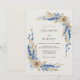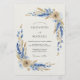 This design features a warm, earthy palette with pops of vibrant blue blossoms and soft, sandy-colored blooms. A bohemian arrangement evokes a natural, tranquil atmosphere, perfect for a serene, rustic occasion.