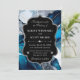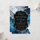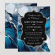 This refined design features swirling agate-inspired textures in blue, white, silver, and gold, accented with glittering highlights and ornate framing. The cool-toned palette and fluid marbling evoke elegance, depth, and modern sophistication—perfect for wedding stationery that blends bold artistry with timeless charm. Ideal for couples seeking a luxurious and visually striking aesthetic.