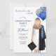 Ela acreditava que poderia, então ela fez um convite para a garota da graduação. Possui formando de mulheres com balões azuis e prateados, boné de formatura e vestido.