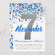 Convite Blue Silver Glitter Confetti Boy Sétimo Aniversári