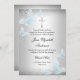 Convite Blue Silver Swirfly & Cross Baptism Convidar