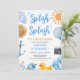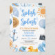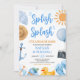Faça um salto com este Convite de Aniversário de Bash, Praia Azul, Esplash. Com um sol brilhante, um guarda-chuva azul, uma âncora, um brinquedo de pato bonito, uma câmera, uma bola colorida de praia, um balão azul, e um chapéu de praia de na moda, este design capta a mais recente vibração para a celebração do verão. Quer você esteja hospedando uma praia ou uma festa ao lado da praia, este convite define o tom perfeito para um dia cheio de sol, areia e salpicos! BRT135