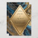 Convite Blue Teal Gold Agate Marble Geometric Wedding