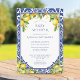 Convite Blue Tile Lemon Mediterranean Baby Shower