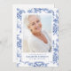 Convite Blue Toile Floral Photo Funeral