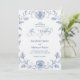 Convite Blue Vintage French Calligraphy Wedding Invitation