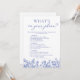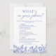 O Blue What's On Your Phone Chá de panela Game é uma atividade interativa e moderna. Os convidados participam consultando itens de uma lista em seus telefones—coisas como encontrar uma foto específica, ter determinados aplicativos ou responder a perguntas específicas. É uma maneira divertida de engajar todos e despertar as conversas enquanto adiciona um toque de tecnologia às festividades do chá de panela, todo temido em torno da cor azul para uma experiência coesa e agradável. Blue Floral O que há no seu jogo de Chá de panela por telefone algo azul vitoriano jogo de Chá de panela azul vitoriano