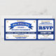 Fun, allstar baseball game ticket style birthday party invitation in your team or school colors of blue and gold or blue and white with gold accents.