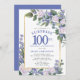 Convite Blue White Floral 100th Birthday Surprise Party