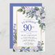 Convite Blue White Floral 90 Birthday Surprise Party