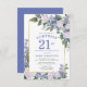 Convite Blue White Floral aniversário de 21 anos Surprise