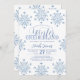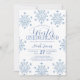 Rustic modern elegant winter one year boy birthday party invitation template featuring a frame of white and blue snowflakes and a chic typography script. ++++++++++++++++++++ Easy to personalize with your details! +++++++++++++++++ The invitation is suitable for a winter wonderland mountains resort, rustic country farmhouse, or cottage one year boy birthday party.