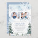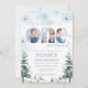 Create a magical winter atmosphere for your little boy's first milestone with this blue Winter Onederland birthday invitation/template, featuring watercolor pine trees and a custom photo collage.