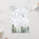 EDITABLE Blue Winter Onederland Forest Snowfall 1st Birthday Invitation