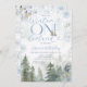 Convite Blue Winter Onederland Forest Snowfall Birthday