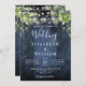 Este cartucho de madeira azul-celeiro, tudo em um, acendeu com um convite de casamento verde pode ser personalizado com suas informações na tipografia moderna e detalhes de casamento no sentido inverso. Projetado por Thisnotme©