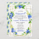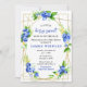 This fun and whimsical baby shower invitation features watercolor blueberries, daisies and foliage on a gold geometric frame. The text combines handwritten script and serif fonts for a stylish and modern look. This is perfect for a summer rustic baby shower.