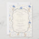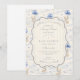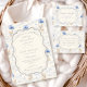 A sweet vintage-inspired design featuring delicate blue bows, soft striped detailing, and charming blueberry garden illustrations. Toile-style artwork with adorable animals and fruit baskets creates a classic storybook feel in a soft powder blue palette. The ornate central frame adds elegance while keeping the overall look light, refined, and timeless. Perfect for a baby shower with a gentle garden theme and a touch of traditional charm.