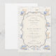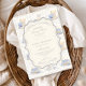 A sweet vintage-inspired design featuring delicate blue bows, soft striped detailing, and charming blueberry garden illustrations. Toile-style artwork with adorable animals and fruit baskets creates a classic storybook feel in a soft powder blue palette. The ornate central frame adds elegance while keeping the overall look light, refined, and timeless. Perfect for a baby shower with a gentle garden theme and a touch of traditional charm.