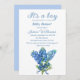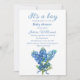 É um menino! Bluebonnets flores a aquarela, pintada por Monika Howarth. Texas Bluebonnets. Natureza, convite de chá de fraldas de ilustração floral azul. Personalize-o com seus detalhes.