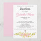 Convite Blush Coral Watercolor Cross Baptism