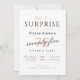 O convite de aniversário de surpresas clássico moderno apresenta na moda e tipografia com detalhes de sua festa em bonito branco, preto e branco, simples e elegante, Excelente para a 75ª festa de aniversário ou qualquer outra idade.