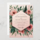 A soft blush pink palette blends with lush, deep green foliage. The arrangement features detailed floral elements reminiscent of anemones and dahlias, creating a romantic and abundant natural aesthetic.